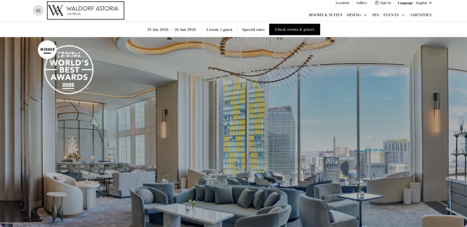 Waldorf Astoria Las Vegas is an iconic luxury hotel located in the heart of the Las Vegas Strip. Renowned for sophisticated design, personalized service and wellness-focused amenities, it offers a serene, smoke-free escape in the city’s vibrant center.