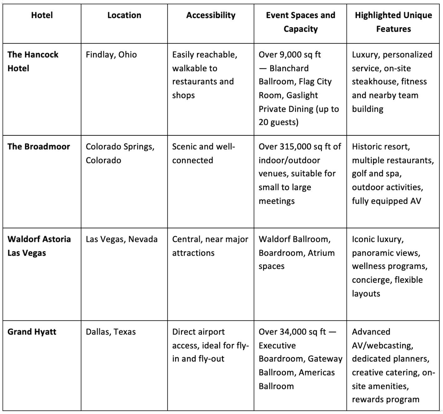 The following hotels across the United States offer business-friendly amenities, flexible spaces, and professional support — making them strong options for meetings, conferences, and leadership events of all sizes.