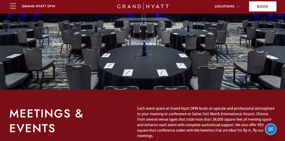 Grand Hyatt offers refined accommodations, upscale amenities and exceptional service for both business and leisure travelers. In Dallas, it features over 34,000 square feet of versatile event space across three main venues — the Executive Boardroom, Gateway Ballroom and Americas Ballroom.